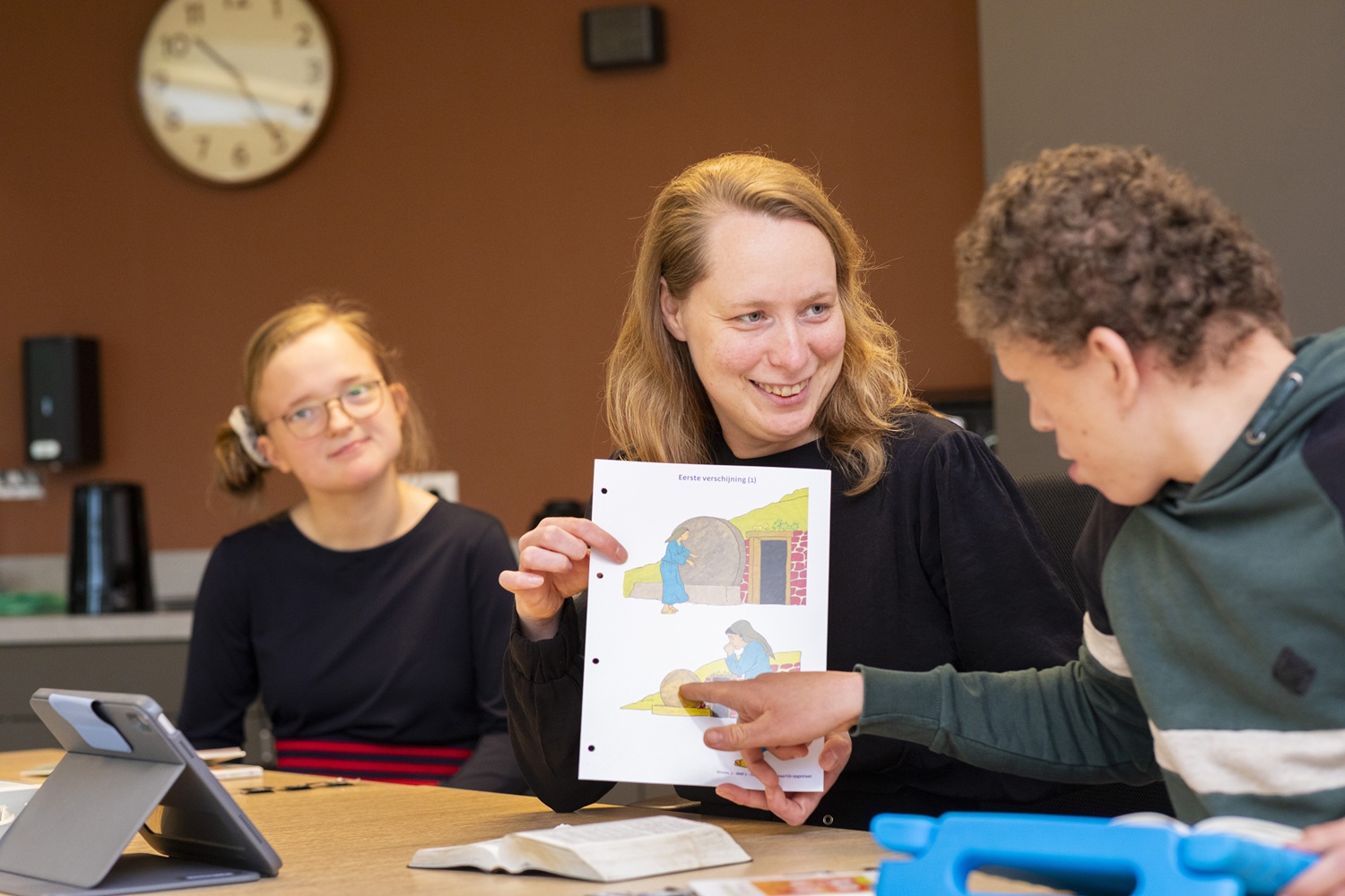 “Wanneer we op zondagavond zijn psalm zingen bij het orgel, is Jelle soms aangedaan. Dat raakt ons, want hij huilt verder bij geen enkele andere gelegenheid. Dan lijkt het wel of bepaalde woorden voor hem betekenis krijgen. Dat is toch iets wat hij bij Adullam meekrijgt.” “Wat ze bij Adullam vanuit de identiteit meegeven, sluit aan op de thuissituatie. Bij de dagopening gebruiken ze hun eigen methode voor Bijbels Onderwijs. Jelle kan dan zo genieten van de prachtige Bijbelse platen. Hij kruipt altijd heel dichtbij zodat hij ze goed kan bestuderen. Dat is waardevol,” zegt moeder Van der Ploeg.