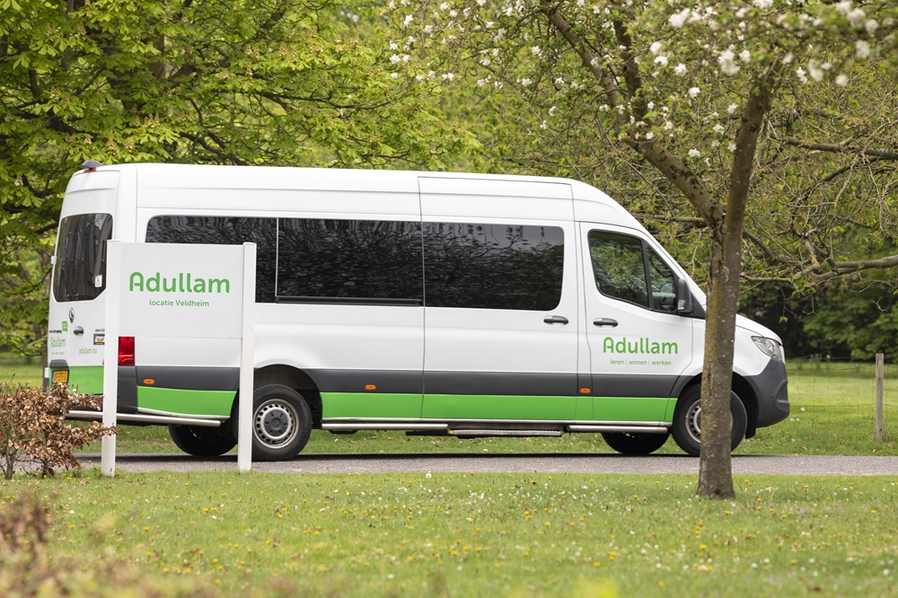 Inmiddels gaat Jelle niet meer naar De Klimop maar naar het werkcentrum van Muiderheim. “Jelle gaat dolgraag naar Adullam. Hij is hier zo op zijn plek. Als ik hem zijn jas en schoenen aan doe ’s morgens, dan gaat hij al bij de deur staan wachten op de bus. Hij vindt de autorit heel leuk, de aandacht die hij op Muiderheim krijgt en het dagprogramma dat ze hebben. Dat is voor hem herkenbaar, het geeft hem houvast. En hij wordt beziggehouden. Eens in de maand gaat Jelle huifbed rijden. Regelmatig gaat hij fietsen met een vaste vrijwilliger.”
