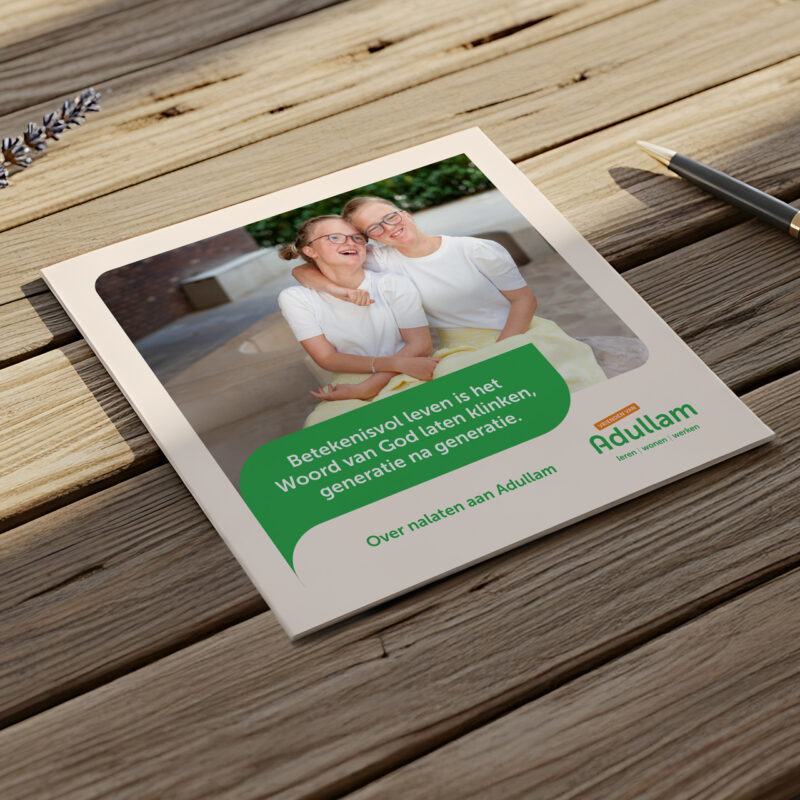 Wie overweegt om Adullam in het testament op te nemen, kan vrijblijvend advies krijgen. Meer informatie is hier te vinden of vraag hier gelijk de brochure aan.